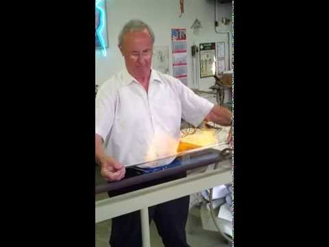 Glasbläser bei der Arbeit an einer Neon Skulpt